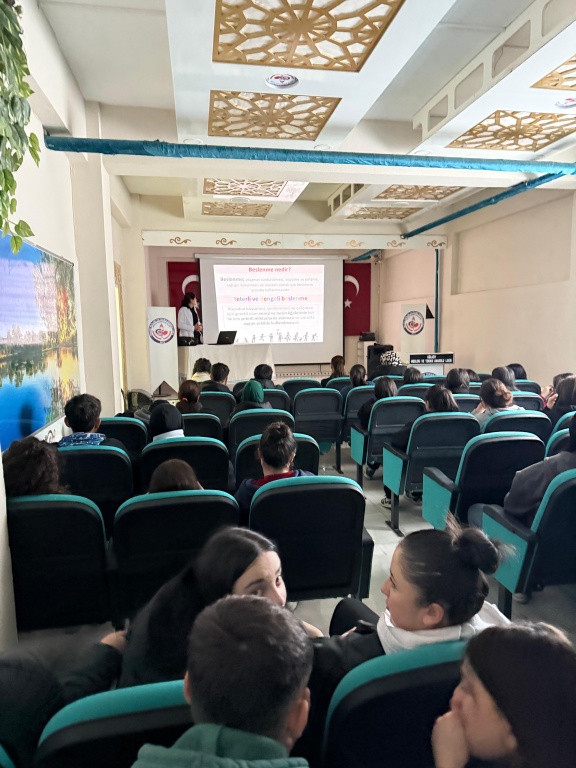 Gölköy Toplum Sağlığı Merkezi hekimi Uzm. Dr. Seda Kahraman tarafından okulumuz öğrenci ve öğretmenlerine yönelik olarak sağlıklı beslenme, fiziksel aktivite, obezite, çölyak, diyabet, tuz tüketiminin azaltılması ve davranışsal bağımlılıklar konularında bilgilendirme faaliyeti gerçekleştirildi. Eğitimde fiziksel aktivitenin koruyucu etkisine vurgu yapılırken, çölyak ve diyabete ilişkin farkındalık ve okul içerisinde dikkat edilebilecek hususlar özellikle belirtildi. Ayrıca güvenli internet kullanımı ve sanal ortamlarda mağdur olmamak için dikkat edilmesi gereken faaliyetler konusunda örnekler paylaşıldı.Öğrencilere bilinçli internet kullanımı konusunda yararlanabilecekleri faydalı internet kaynakları konusunda bilgi verildi. Değerli bilgilendirmeleri için Gölköy Toplum Sağlığı Merkezi personeline teşekkür ederiz.